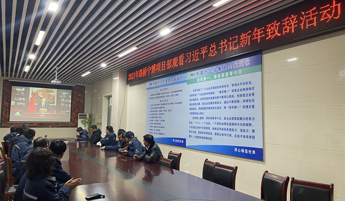 博望区“宁博一体化”项目管理部组织全体职工集中观看了习近平主席发表2021年新年贺词,回顾“用众志成城、坚忍不拔书写的抗疫史诗”,展望“全面建设社会主义现代化国家新征程”。习近平主席的新年贺词描绘了这一年中国人民波澜壮阔的奋斗画卷,温暖人心、令人振奋。大家表示在新的一年,要继续奋斗,勇往直前,创造更加灿烂的辉煌,以优异成绩庆祝中国共产党成立100周年。随后项目部还举行了抽奖活动,在欢声笑语中共同迎接2021年的到来。