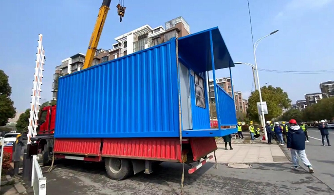 完成小区防疫出口集装箱吊装工作