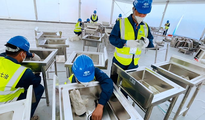 由于现场条件有限,如何确保700多人顿顿有饭吃、餐餐吃得饱、吃得好,是一直困扰着贺中国的难题。即使此前从未接触过后勤保障工作的他也明白,24小时轮班大干,没有强大的后勤保障支撑是绝对无法实现和维持的。作为党员的他深知自身责任重大,“要多订一些,绝对不能缺!”这是从进场以来他一直的工作理念,每天提前对接班组负责人,统计好第二天的就餐需求量,并在此数据基础上适量增加一些,确保一些食量大的工人能吃饱。