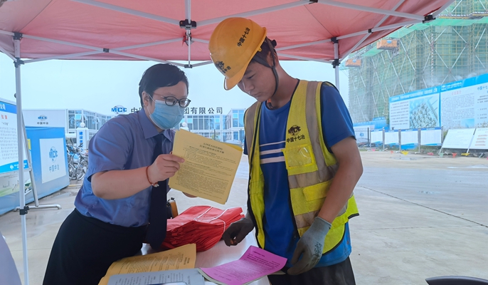 为保障农民工的的合法权益和切身安全,维护好五河项目民生工程建设,8月29日下午,五河县人民检察院同县人社局走进中国十七冶承建的五河县花园安置房项目工地进行普法宣传。