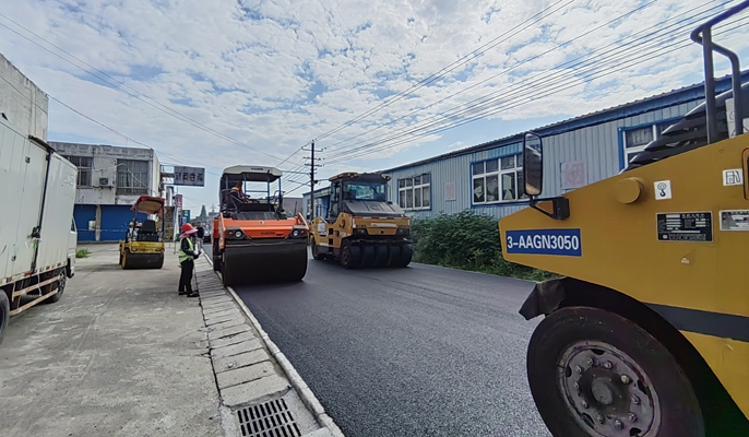 5月28日,经过一天的努力,马鞍山市三台国际装饰大世界一条长约450米的道路完成沥青铺设,原来破碎的砂石路被平整的沥青路所取代。