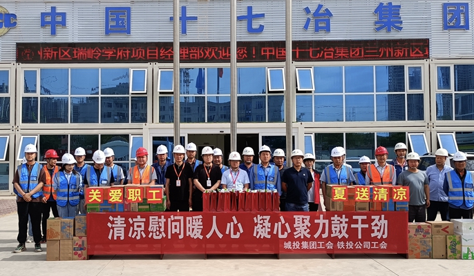 7月20日上午,中共兰州新区工会、兰州新区城投集团工会到中国十七冶甘肃分公司承建的瑞岭学府项目开展“关爱职工,夏送清凉”慰问活动。