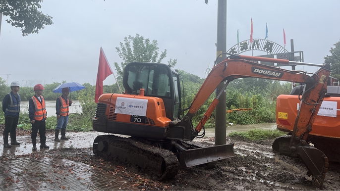 针对近期强降水天气,项目部第一时间召开防汛专题会,严格落实公司、属地主管部门各项要求,全面排查洪涝隐患、准备应急资源。7月13日,接到属地政府通知后,项目部立即启动防汛救灾应急预案,下午1时,通过多方渠道调集10余名作业人员、2台挖掘机及数台大功率抽水泵,全力配合当地部门防汛工作,用时5小时完成二坝镇清淤任务,确保区域排水通畅,及时消除安全隐患。