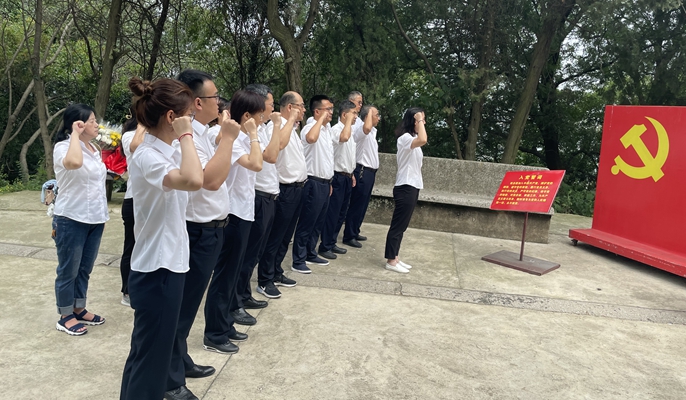 活动中,全体党员在烈士纪念馆前,庄严肃立,面对鲜红的党旗,举起右拳,重温入党誓词。之后,全体成员来到革命烈士纪念馆,通过观看史料、聆听讲解等方式,详细了解先烈们的英勇事迹。