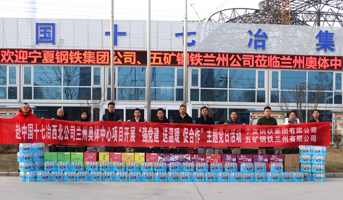 12月19日上午,中国十七冶集团兰州奥体中心项目部联合宁夏钢铁集团和五矿钢铁兰州公司开展“强党建 送温暖 促合作”主题党日活动。宁夏钢铁集团销售部直销总经理唐杰,五矿钢铁兰州公司副总经理王迎平,十七冶甘肃分公司纪委书记冯绪林等参加活动。