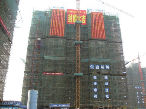 该主体结构共计地下1层、地上18层,是继3#、4#、5#、6#、8#楼封顶之后又一主体结构顺利封顶的楼栋。自2012年7月工程全面施工以来,项目部精心组织,以管理提升活动为抓手,积极开展“树正气、讲责任、比贡献”主题劳动竞赛,全体参战员工充分发扬“高效严谨、精细务实”的企业作风,克服了夏日高温等困难,确保工程节点顺利完成,并在工程质量、安全和文明施工等方面得到了业主、监理的一致好评。