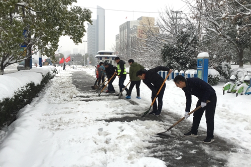 置业公司精心策划,成立以钟华彪总经理为组长的置业公司雪灾应急响应小组,下设置业机关应急小分队、置业慈湖项目应急小分队和置业银塘项目应急小分队,置业公司党委书记徐良蓉和项目经理任各小分队队长,各小队统一指挥,分工明确,共组织3辆装载车、60余人次参加此次扫雪行动。