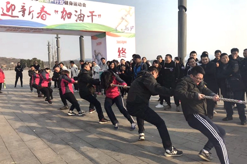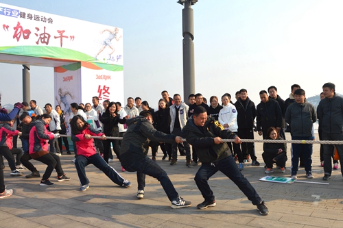 2月6日下午,马鞍山市房地产综合开发协会主办的房地产行业职工迎新春健身活动在秀山湖举行,中冶置业(安徽)公司团委组织10名员工参加并在活动的拔河比赛中获得第一名的好成绩。市住建委副主任田雁南、中冶置业(安徽)公司党委书记徐良蓉等参加了活动。