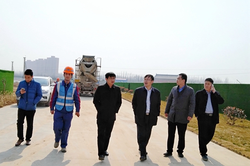 3月8日上午,郑州市惠济区副区长黄国彦一行到中冶置业(安徽)公司承建的大河社区安置房项目检查指导工作。