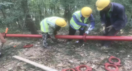 面对众多困难,项目部全体人员毫不松懈,经反复研究与讨论后,决定采用从山脚下架设混凝土地泵,通过泵管连通山顶的方式解决混凝土输送问题,最大限度的减少了对环境的破坏与材料的损耗。