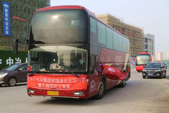 2月27日上午9点,经过48小时的长途跋涉,2辆载有66名返岗复工的民工专车缓缓驶入中国十七冶集团郑蒲港片区项目部。这是郑蒲港新区首批成规模集中返岗复工的农民工队伍,吹响了园区复工复产的“集结号”。