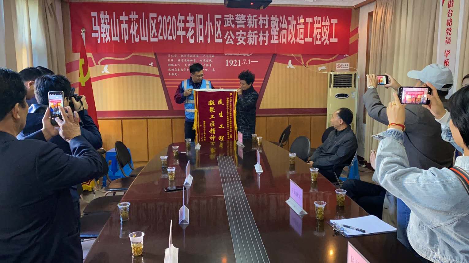 11月3日,武警马鞍山支队、花山区老旧改小区居民代表以及小区业主委员会向十七冶马鞍山花雨老旧小区改造项目赠送四面锦旗,对项目部工作人员“高效严谨、精细务实”的工作作风以及热情周到的服务给予高度赞扬和诚挚感谢。