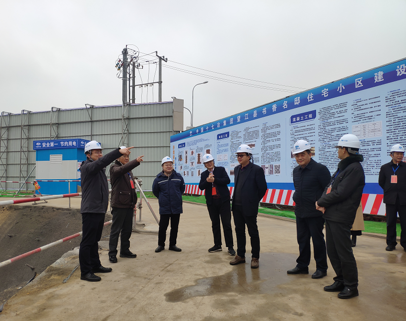 12月10日,望江县人大常委会副主任肖好汉到中冶置业(安徽)公司承建的望江县书香名邸住宅小区建设工程项目调研。