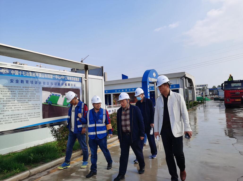 4月26日下午,河南省住建厅控尘办主任喻幕海到十七冶中原分公司承建的河南平顶山“四馆一中心”项目检查指导工作。