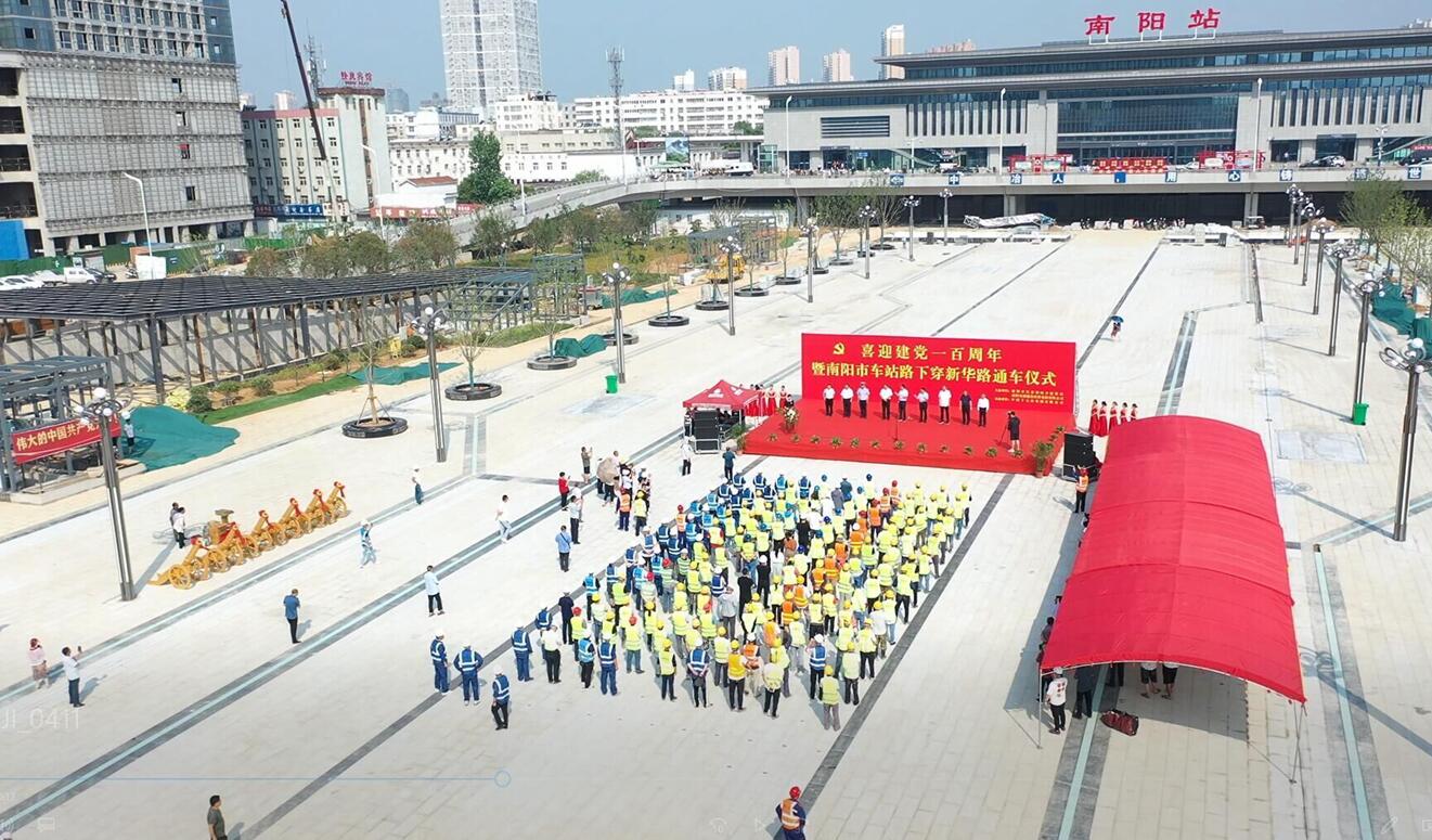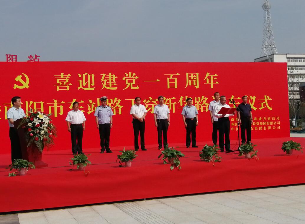 6月30日上午,中国十七冶集团中原分公司承建的南阳市车站路下穿新华路项目部举行通车仪式,标志着南阳市火车站广场地下空间利用(地上部分)与下穿新华路工程建成通行。南阳市住建局党组书记、局长赵浩,市人民防空办公室调研员夏明晓,南阳交通建设投资集团党委书记、董事长师松立,卧龙区副区长王志德,区城管局局长常腾飞,区车站办事处书记刘洪岑,中国十七冶集团中原分公司经理桂光红等参加活动。