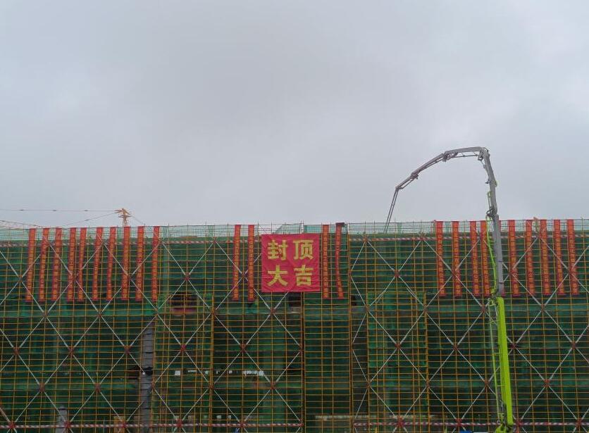 项目时间紧、任务重、跨度大,受到郑蒲港新区社会各方高度关注。自开工以来,项目管理团队统筹谋划、科学组织、迎难而上,克服工期紧、高温、疫情等诸多不利因素,加强与各方的沟通协调,严格落实精细化管理要求,聚焦重难点工序,紧盯关键节点工期。同时,在封顶层施工过程中,现场施工管理人员重点把控钢筋绑扎、模板安装、水电预埋、混凝土浇筑等施工工序,保证施工生产安全有序开展的同时质量一次成优。在后续的施工过程中,项目部全体人员将以更加饱满的工作热情,奋力完成各项指标任务,向全年任务目标发起冲刺。