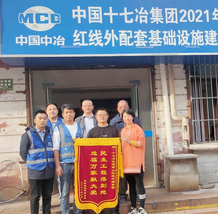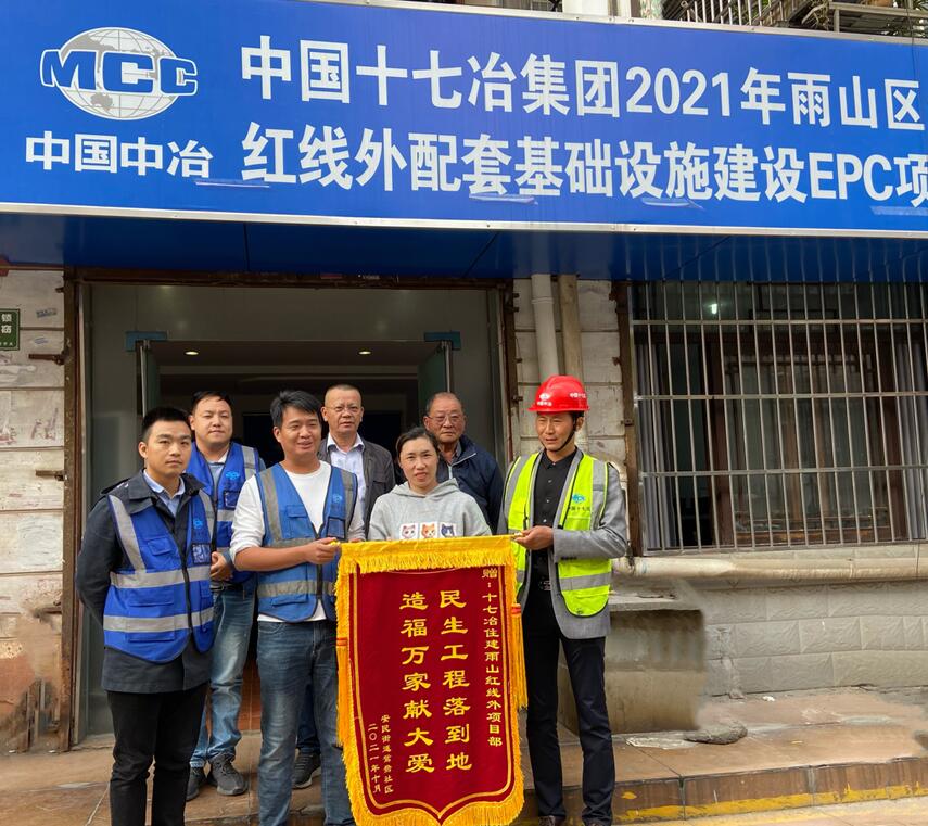 10月17日下午,马鞍山雨山区安民街道鸳鸯社区居民代表将印有“民生工程落到地,造福万家献大爱”的锦旗送到十七冶雨山红线外项目部,对项目部全体成员在映翠花园五期南门处易涝点施工改造中的尽职尽责、热情服务表示感谢。