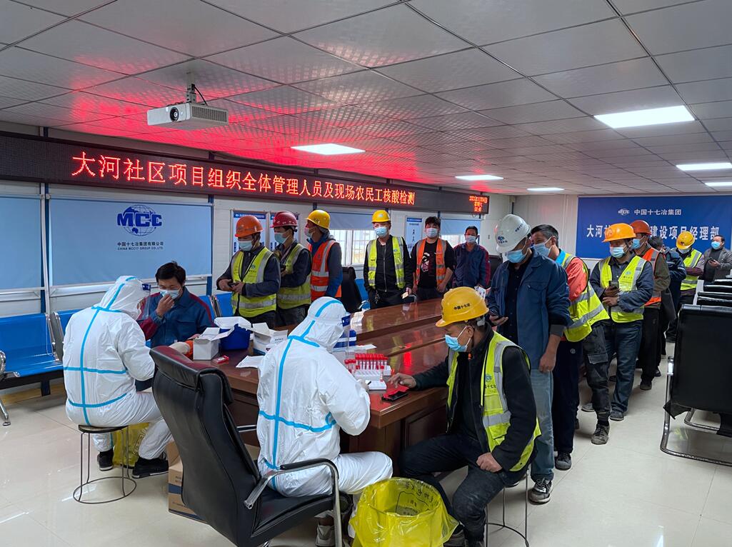 11月6日上午,中国十七冶集团郑州大河社区项目部邀请惠济区人民医院医务人员,为项目部管理人员及农民工共计715人进行新冠病毒核酸检测。